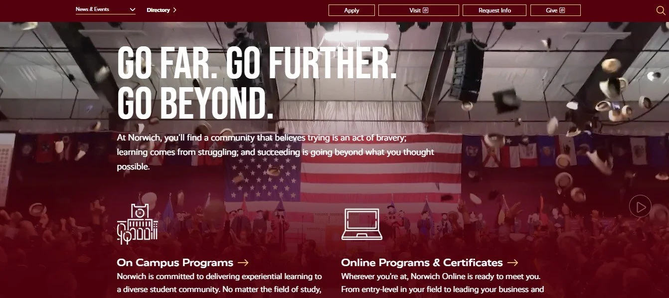 Norwich University Website Launch, Digital 2019 CCS Alumni Magazine, Print Norwich University Logo Redesign 2023, Branding College for Creative Studies Website, Digital 2023 Alumni Magazine, Content C Magazine, Print Online Video Series, Digital Detroit International Wine Auction, Print Talk to Your Kids About Art School PSA, Digital CCS Viewbook, Print Pulse, Digital Watson Peacock, Print Watch Me Work, Digital Work Studies, Digital